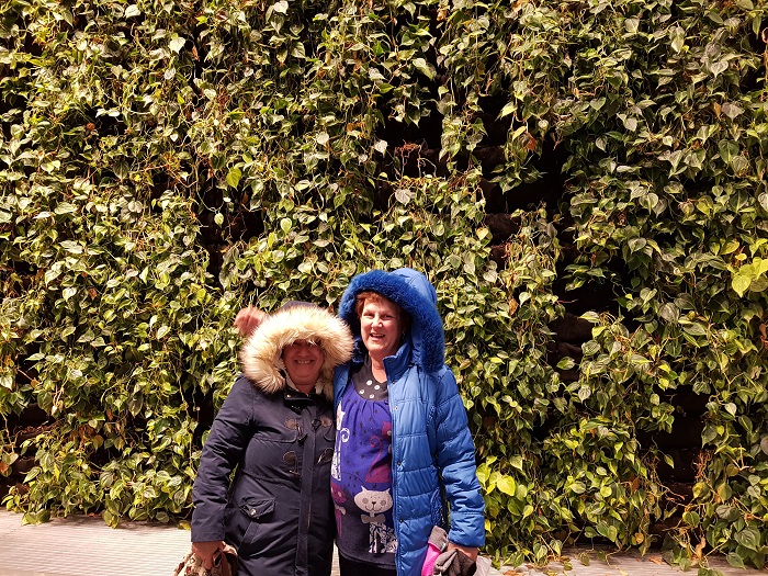 Devant le mur végétal en allant chez Omer de Serre.