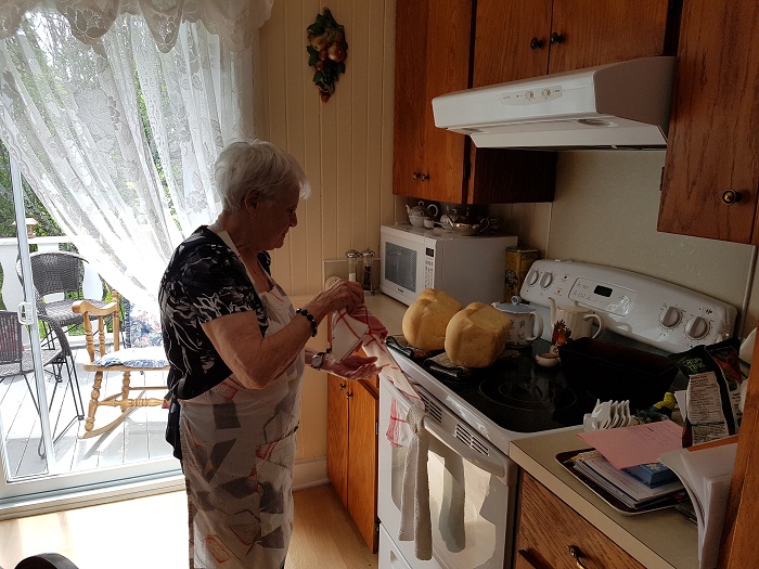 Pierrette qui sort son pain du four.