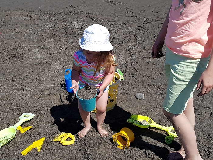 Détente à la grève à Pierre-Jean, avec la fille du chalet à Diane.
