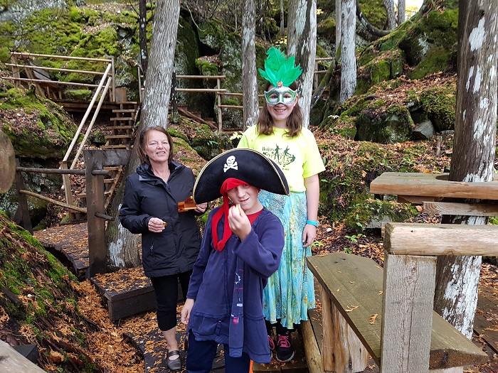 Michelle a organisé une petite course aux trésors dans les bois sur le chemin de la grève. Le thème de Peter Pan et la fée Clochette. On a retrouvé de dollars en chocolat.
