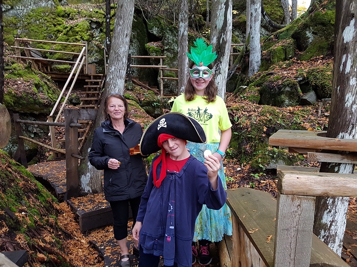 Michelle a organisé une petite course aux trésors dans les bois sur le chemin de la grève. Le thème de Peter Pan et la fée Clochette. On a retrouvé de dollars en chocolat.