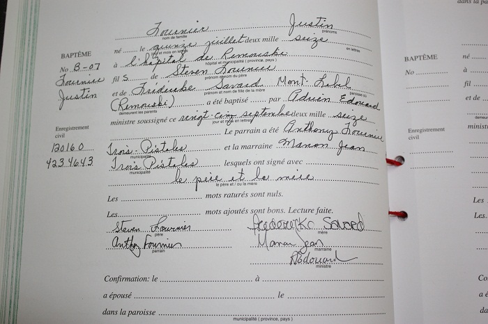 Le parrain est Anthony Fournier et la marraine est Manon Jean.