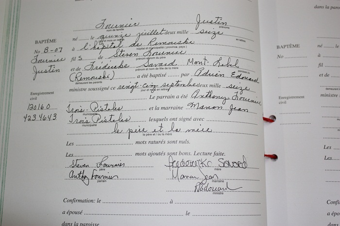 Le parrain est Anthony Fournier et la marraine est Manon Jean.
