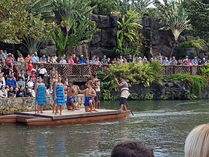 Le Centre culturel polynésien est un parc thématique polynésien et un musée vivant situé à Laie, sur la rive nord d'Oahu, à Hawaii. Samuel, Liv et Maxime sont dans la foulle en arrière. |