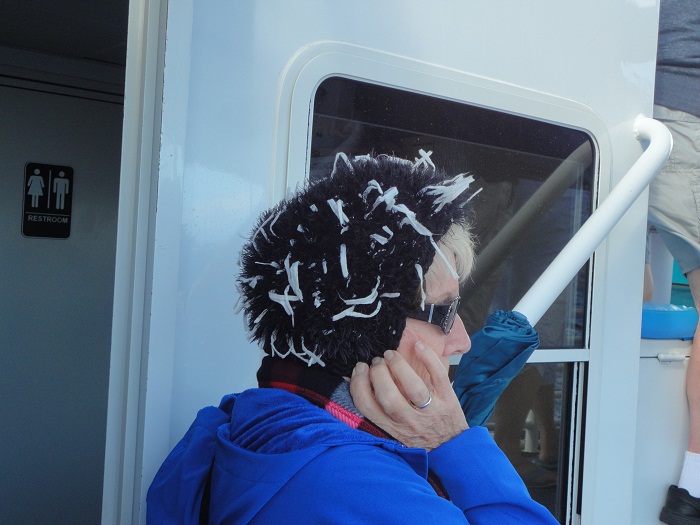 Sur le Calypso. Michelle a tripé sur la madame qui avit un chapeau en peau d'oursin!