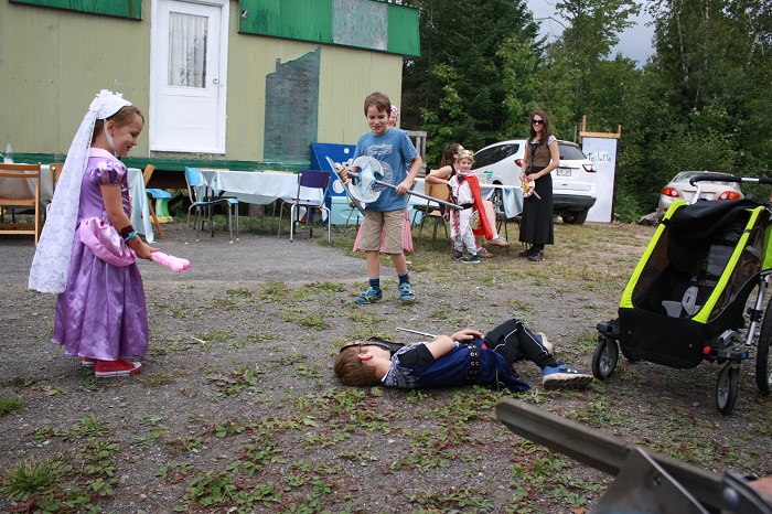 La fée Morgan, alias Mireille a organisé une chasse au trésor pour ses petits- enfants, leurs amis et parents. Quatres sentiers permettaient de trouver des indices pour trouver le coffre au trésor. Les thèmes des quatres éléments, soit l'air, la terre, l'eau et le feu étaient personnifés par personnages mythiques.