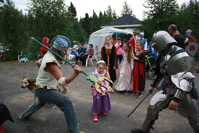 La fée Morgan, alias Mireille a organisé une chasse au trésor pour ses petits- enfants, leurs amis et parents. Quatres sentiers permettaient de trouver des indices pour trouver le coffre au trésor. Les thèmes des quatres éléments, soit l'air, la terre, l'eau et le feu étaient personnifés par personnages mythiques.