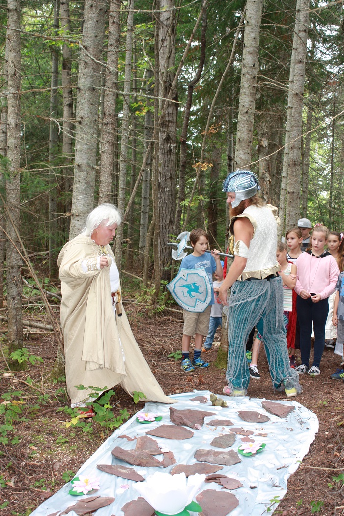 On marche le sentier de l'eau afin de rencontrer le chevalier et la dame de l'eau pour qu'ils nous donnent des indices pour résoudre l'énigme de l'emplacement du trésor.