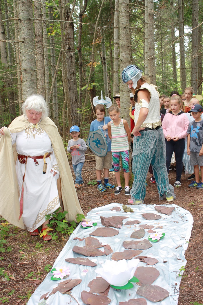 On marche le sentier de l'eau afin de rencontrer le chevalier et la dame de l'eau pour qu'ils nous donnent des indices pour résoudre l'énigme de l'emplacement du trésor.